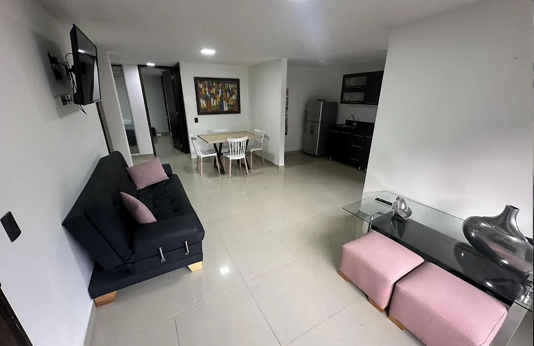 Het appartement heeft een ingerichte keuken met een magnetron, een koelkast en keukengerei. Los Asados serveert Zuid-Amerikaanse keuken op slechts 12 minuten lopen van deze accommodatie. Dit appartement ligt tegenover het metrostation Suramericana en op 5 km van de luchthaven van Medellin Enrique Olaya Herrera. Gasten kunnen aan bowlen en fietsen in de omgeving deelnemen.